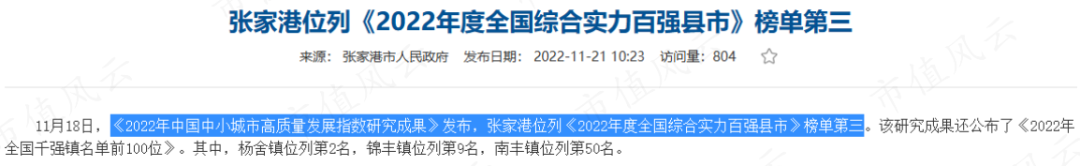 张家港是江苏省的一个县级市,但论经济活力和综合实力,张家港一直没怎么服过谁:2022年张家港位列全国综合实力百强县市第三位,在2022年发布的《中国城市现代化检测报告》中,张家港位列第二,仅次于县级市天花板昆山。