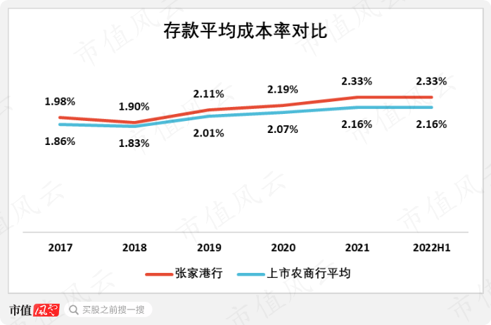 农商行在资金成本方面并不占优势,而公司的存款平均成本率,甚至比上市农商行的平均水平还要高。以2022H1为例,公司的存款平均成本率为2.33%,比同行业平均水平还要高出17个基点。
