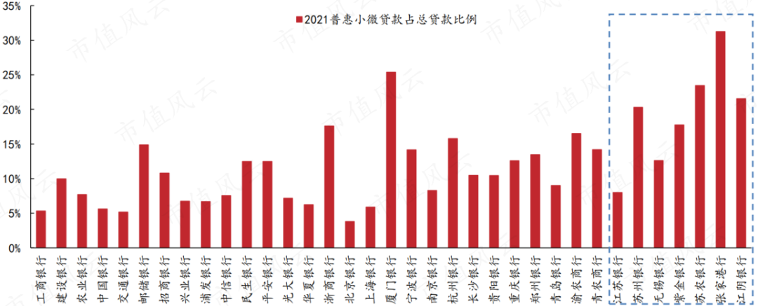 公司之所以能够在贷款时定出高价,与其服务小微客群的定位直接相关:2021年,公司的小微贷款占总贷款的比例超过30%,在上市银行中处于最高水平。