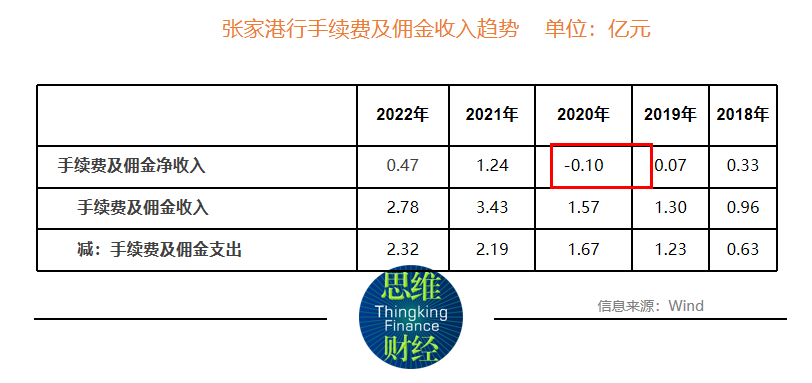 事实上,通过历年利润表数据不难看出, 2018年至2020年,张家港行手续费及佣金净收入较为波动。其中,2020年手续费及佣金净收入亏损978.19万元,2021年,该行手续费及佣金净收入出现大幅回升,全年实现净收入1.24亿元,但2022年再次出现大幅下滑。