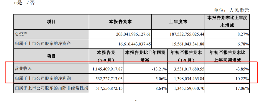 其中,第三季度,该行实现营业收入11.45亿元,同比下降13.21%;实现归母净利润5.32亿元,同比上升5.06%。