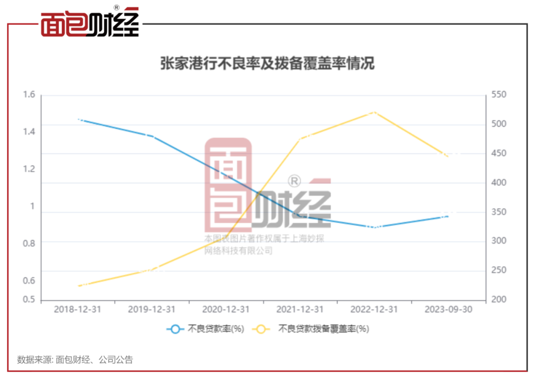 与此同时,该行的拨备覆盖率在下降。数据显示,截至9月末,张家港行的拨备覆盖率为445.11%,较上年末下降75.98个百分点。需要关注的是,即便拨备覆盖率大幅下降,该行的拨备覆盖率仍然满足监管要求,并且在上市银行中处于较高水平。
