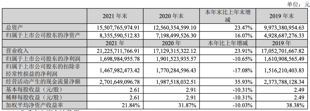 视源股份(002841.SZ)发布2021年年度报告,营业收入212.26亿元,同比增长23.91%。归属于上市公司股东的净利润16.99亿元,同比减少10.65%。归属于上市公司股东的扣除非经常性损益的净利润14.68亿元,同比减少17.08%。