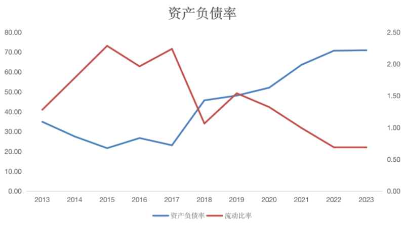 需要注意的是,2017年英联股份在深交所上市,次年开始,公司的资产负债率就急速攀升,2018年增加近23个百分点达到45.67%。并且负债率的增长并没有停止,到2023年6月末时,英联股份的资产负债率已经拉高至70.88%。