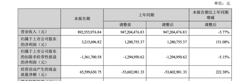 7月30日,英联股份披露半年报,数据显示公司上半年实现营业收入约为8.92亿元,同比下降5.77%,同期实现归母净利润约为321.57万元,同比增加151.08%,不过英联股份的扣非净利润依然亏损136.17万元,亏损幅度同比扩大5.15%。