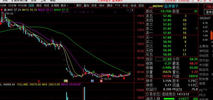 二级市场走势来看,10月15日,盐津铺子的股价在开盘后,经历短暂冲高反弹后,便一路走低,当日收盘报56.1元/股,跌5.51%。而自2021年7月1日-2021年10月14日,公司股价累计跌幅已达43.74%。成交量方面,累计换手达177.05%,平均换手2.53%,相较前期出现放量走势。