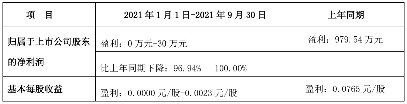 挖贝网10月14日,三晖电气(002857)近日发布2021年前三季度业绩预告公告,预计2021年前三季度实现归属于上市公司股东的净利润为0万元–30万元,比上年同期减少96.94%–100.00%。