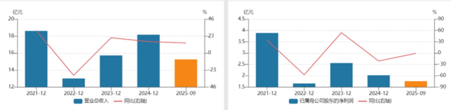 归母净利润2025年Q3为1.76亿元,同比微降0.70%,但一季度、二季度净利润则分别同比下降了36.73%、18.78%。