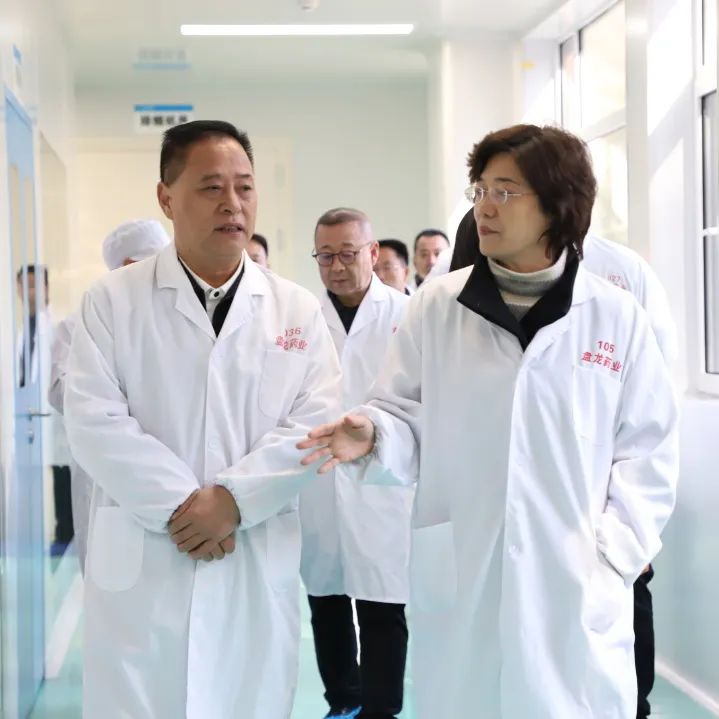 12月2日上午,商洛市市委书记赵璟带领商洛市重点项目观摩团一行到盘龙药业实地观摩了中药配方颗粒研发、生产等新质产业化项目。盘龙药业集团党委书记、董事长谢晓林,董事兼陕西盘龙谷康养公司总经理张志红,党委副书记兼党群工作部主任沈丹等相关负责人陪同观摩。