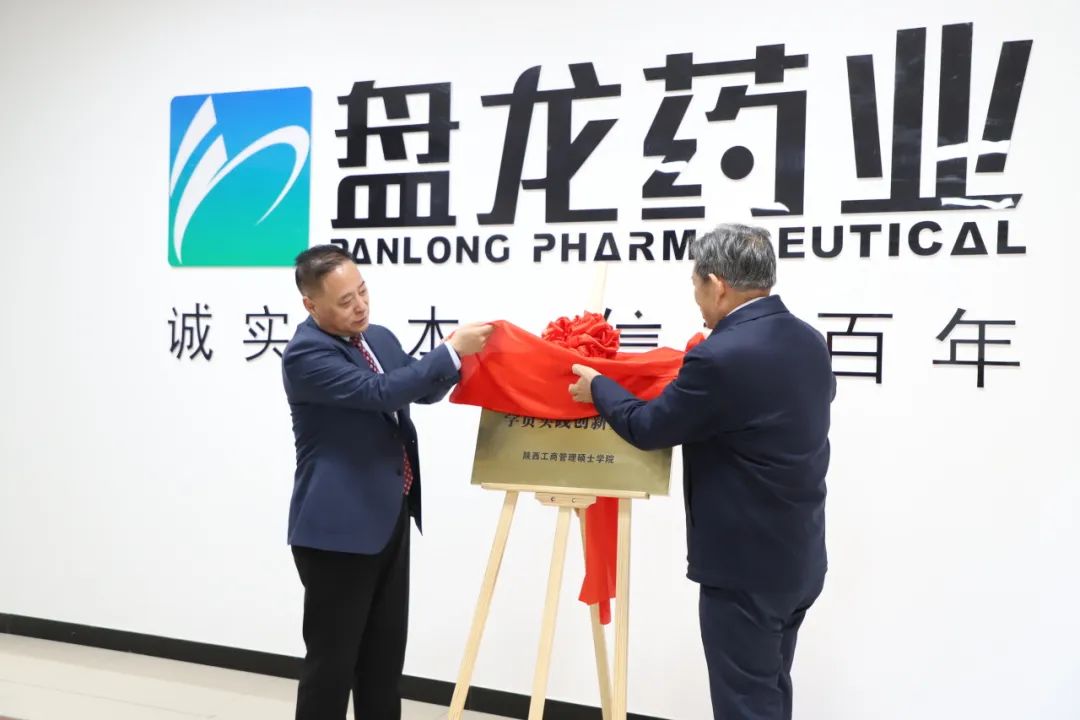 在热烈的掌声中,杨希文书记与谢晓林董事长共同为“学员实践创新基地”揭牌。这是盘龙药业与陕西工商管理硕士学院深化“校企合作”,积极响应国家关于培养高素质应用型人才的号召的重要举措,标志着盘龙药业与陕西工商管理硕士学院双方的合作又迈上了一个新的台阶。