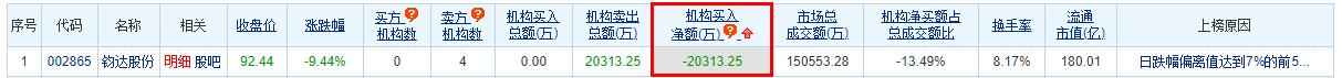 龙虎榜数据显示,钧达股份卖出金额最大的前五名中,有4家机构专用席位。经统计,钧达股份的机构席位今日净卖出金额为20313.25万元。