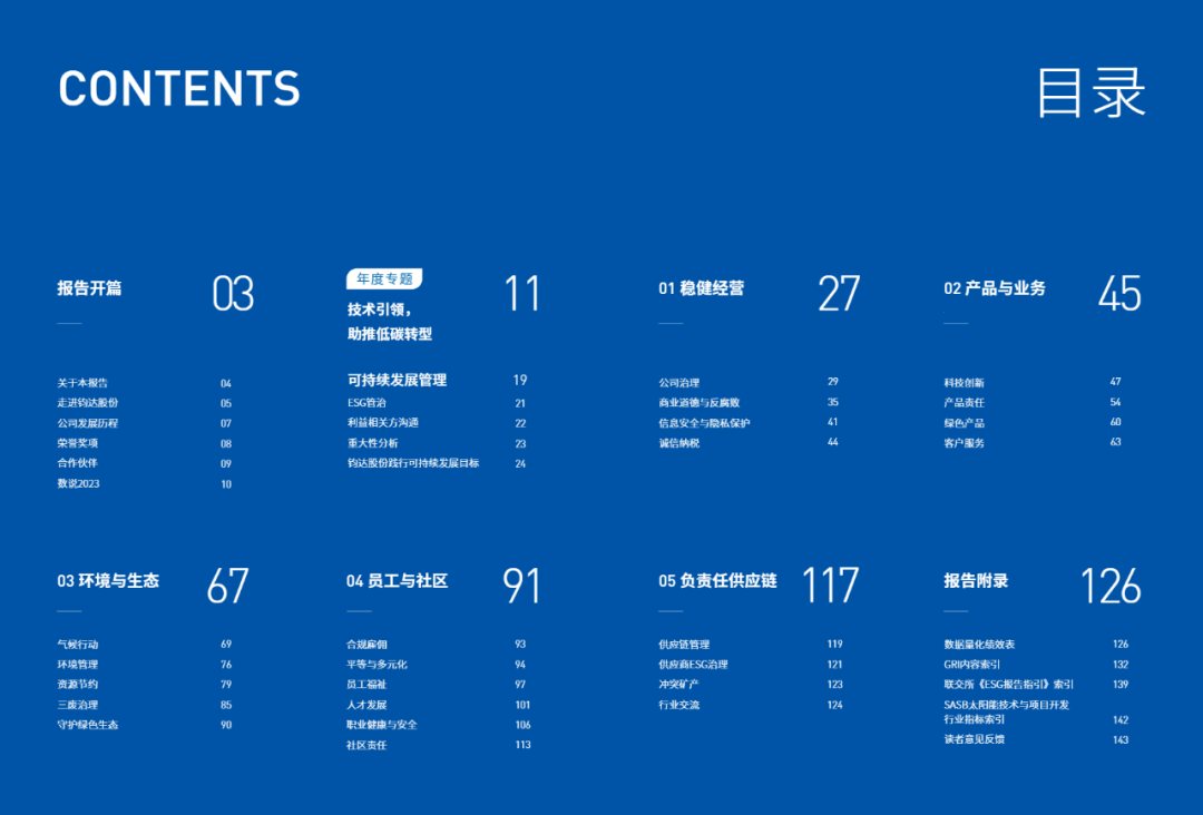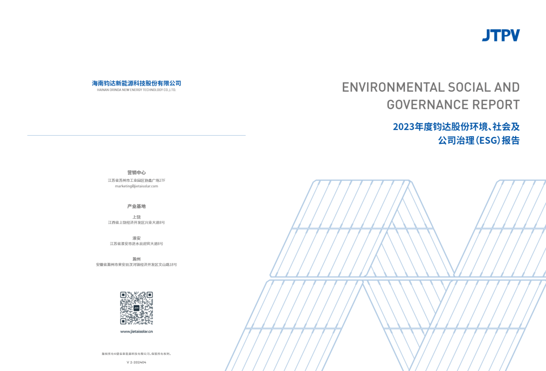 ·4月30日,钧达股份正式发布《2023年度钧达股份环境、社会及公司治理(ESG)报告》(以下简称“报告”),其中收入、运营和CAPEX等指标均获国际评级机构标普ESG最高等级评级,同时公司治理也达到良好等级。报告围绕环境生态、产品业务、员工福祉、可持续供应链及科技创新等核心议题,全面展示了公司在ESG领域的深度实践与卓越贡献。