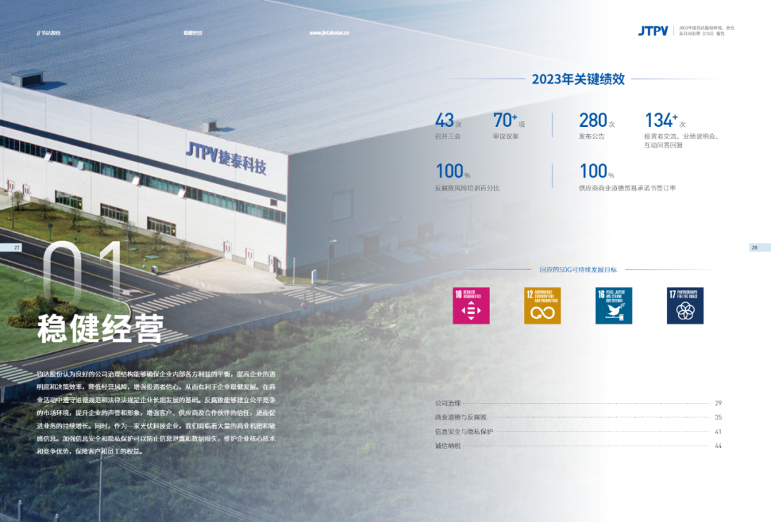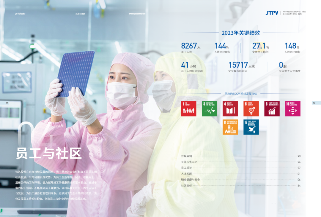 作为新能源行业的领军企业,钧达股份始终坚持经济效益与社会效益并重,不断提升ESG管理顶层设计,以实际行动支持联合国《2030年可持续发展议程》。