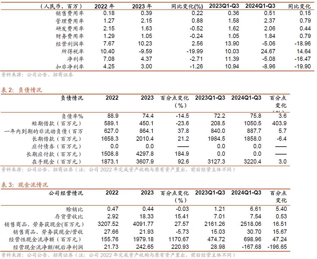 电池经营表现仍优于同业。前三季度公司电池出货合计26.45 GW,同比增长35.29 %,其中N型出货23.70GW,占比89.6%。Q3出货N型合计7.3GW,P型已停产(2023年已完整计提减值),估算单W亏损2-3分,得益在非硅成本控制、电池效率品质上的优势,公司经营表现仍优于同业,若行业供需逐步改善,在盈利上的弹性也会更大。