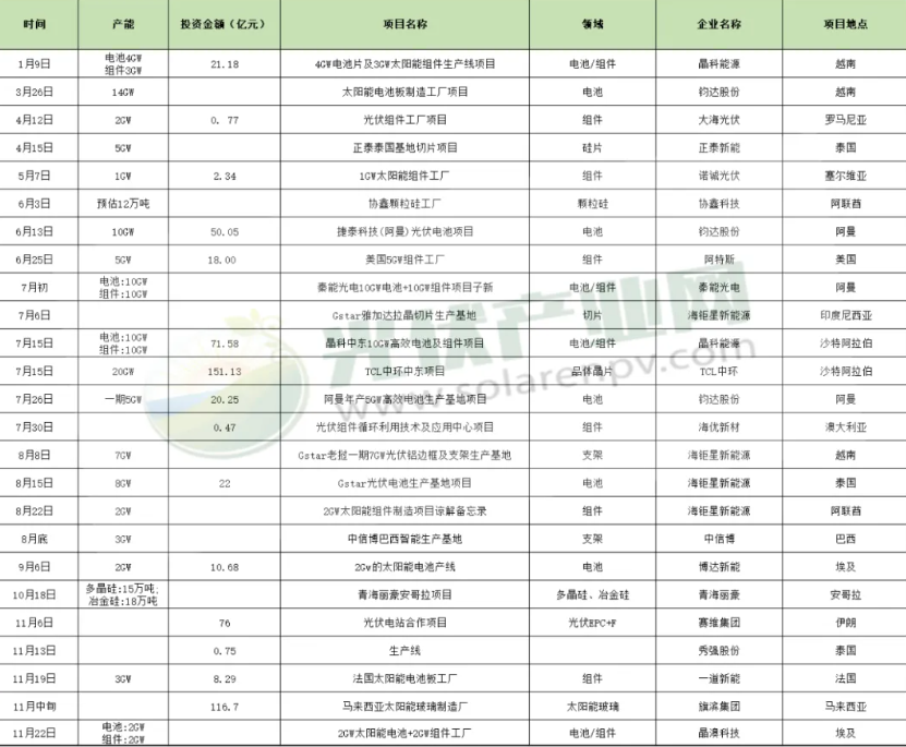 因为,同一时间,已经在资金、产品生态、品牌知名度等维度上早已做到头部的企业却拥有另寻他路的资本。最明显的表现是,过去一年中,中国光伏的全球产能在遍地开花。譬如,先后宣布计划在中东投资建厂的天合、晶澳、晶科与协鑫等,钧达股份也是其中一员。