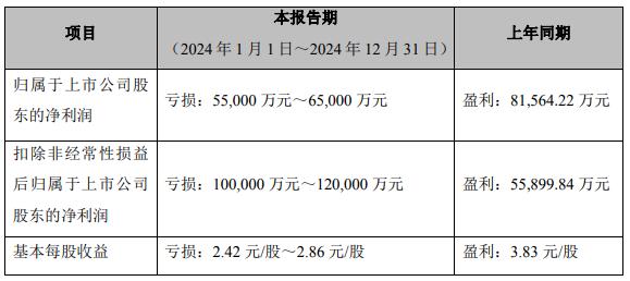 钧达股份(002865.SZ)昨晚发布2024年度业绩预告。钧达股份预计2024年实现归属于上市公司股东的净利润亏损55,000万元至65,000万元,扣除非经常性损益后归属于上市公司股东的净利润亏损100,000万元至120,000万元。