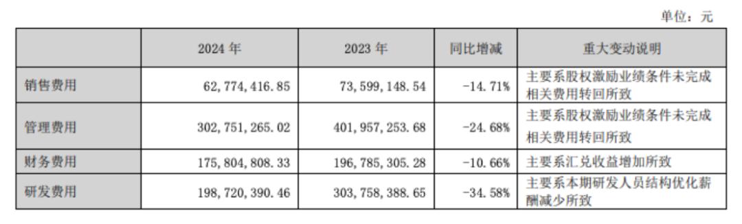 有鉴于低价已成为光伏产业竞争的核心要素,钧达股份已不再加大外围投入,而是大力控制费用成本。财报显示,2024年,钧达股份销售费用、管理费用、财务费用、研发费用分别为6277.44万元、3.03亿元、1.76亿元、1.99亿元,分别同比减少14.71%、24.68%、10.66%、34.58%。