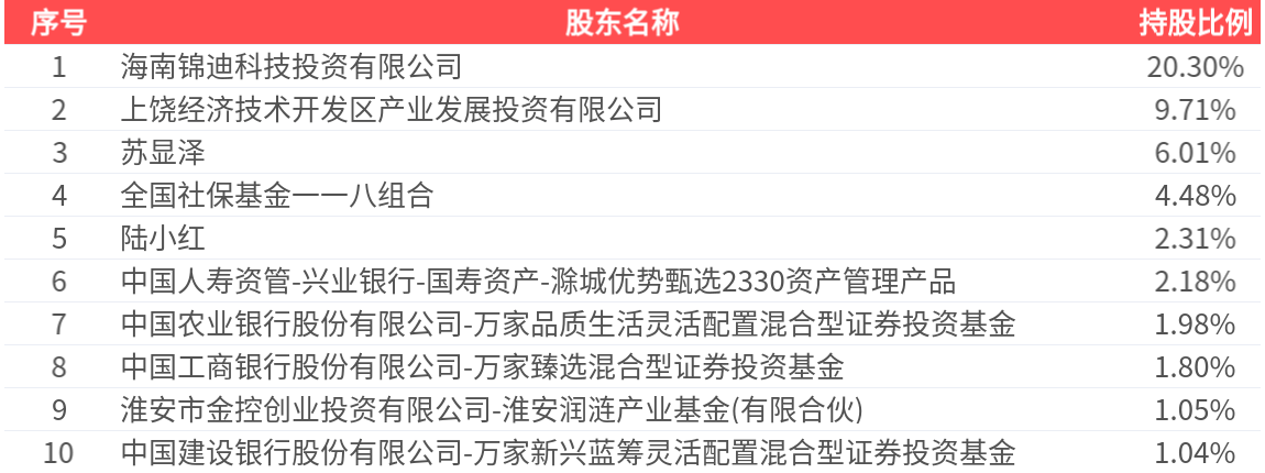 公司股东户数为3.94万户,前十大股东持股数量为1.17亿股,占总股本比例为50.85%,前十大股东持股情况如下: