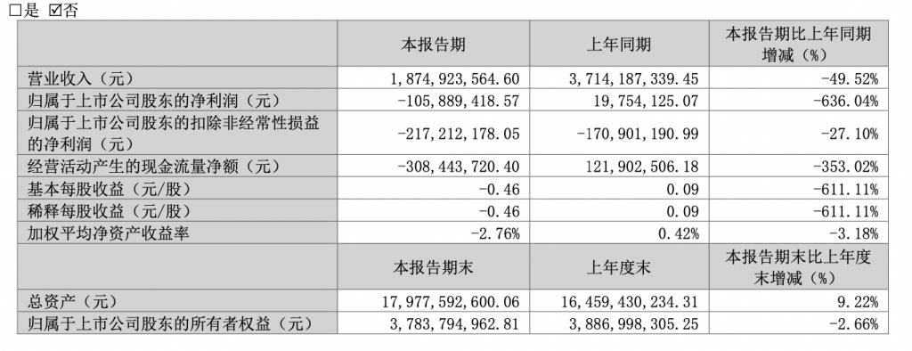 2025 年一季度,公司实现营收为 18.75 亿元,同比减少 49.52%;归母净利润为-1.06 亿元,同比由盈转亏。