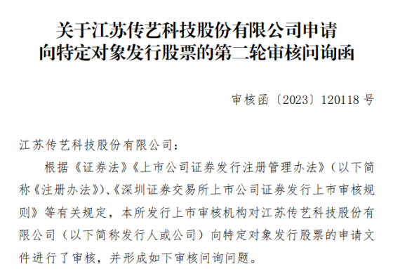 日前,传艺科技因定增事项收到深交所发出的二轮问询函,要求就募投项目的相关情况予以说明。
