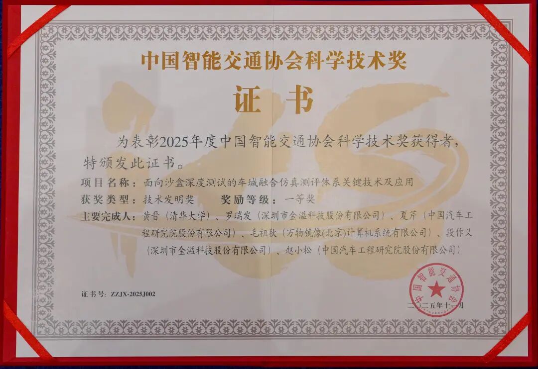 本次获奖项目由金溢科技联合清华大学、中国汽车工程研究院股份有限公司、万物镜像等多家高校与机构共同完成,充分体现了金溢科技在“产学研用”一体化方面的战略布局与资源整合能力。