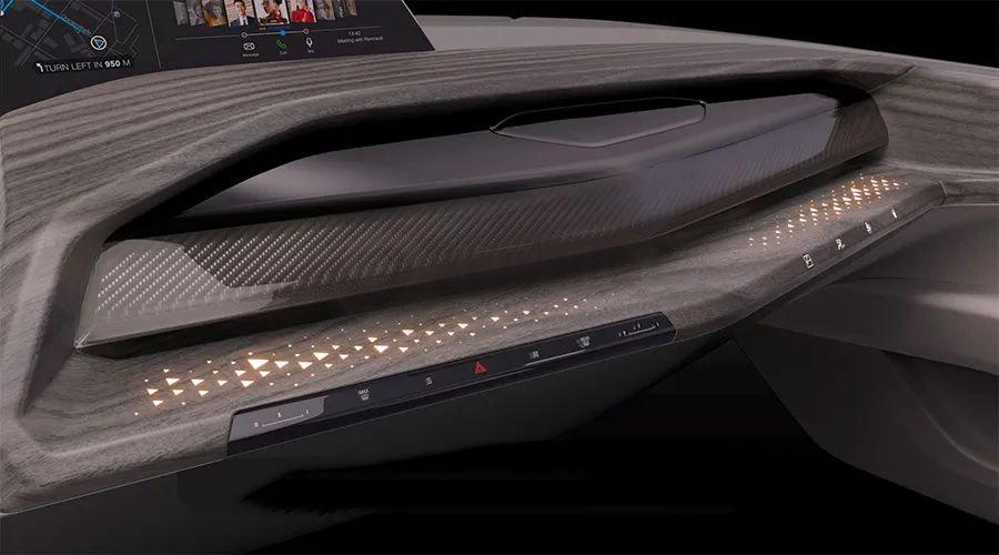 此次创新产品将应用于座椅、车门、遮阳帘和空调系统的控制。所有表面,除基本触控功能外,都配备了振动反馈设计和压力传感防误触设计。触控方式更为灵活,占用空间更少,系统设计简洁度更高,完美达成一体化视觉效果,全面提升内饰氛围。通过辅助触摸屏,组成更加完备的触觉交互系统,更智能化,更富科技感,符合用户习惯,同时可以有效提升可操作性和安全性。