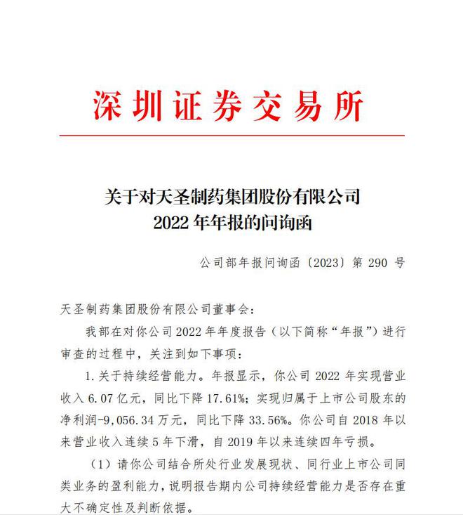 深交所8日向ST天圣下发年报问询函,要求其说明报告期内公司持续经营能力是否存在重大不确定性及判断依据等。
