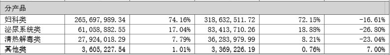 新京报贝壳财经记者注意到,新天药业产品销售下滑明显。占营收比重超七成的妇科类产品,同比下滑16.61%。泌尿系统类、清热解毒类产品收入则分别同比下滑26.8%和23.04%。