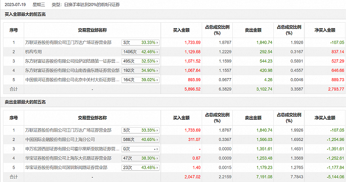 具体来看,机构买入1129.68万元,卖出292.54万元,合计净买入837.14万元。此外,万联证券江门万达广场证券营业部、东方财富证券拉萨团结路第一证券营业部分别买入1733.69万元、1071.52万元;万联证券江门万达广场证券营业部、中国国际金融上海分公司分别卖出1840.74万元、1566.03万元。