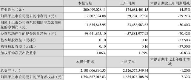 长缆科技(002879)4月28日披露2022年第一季度报告。报告期内公司实现营业总收入2.00亿元,同比增长14.55%;归母净利润1780.73万元,同比下降39.21%;扣非净利润1163.58万元,同比下降50.40%;经营活动产生的现金流量净额为-9864.19万元,上年同期为-5788.20万元;报告期内,长缆科技基本每股收益为0.1元,加权平均净资产收益率为1.06%。