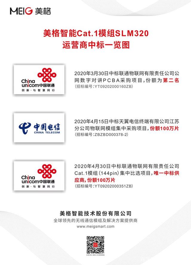 去年三月份,作为全球领先的无线通信模组及解决方案提供商美格智能携手行业领先的蜂窝终端芯片制造商紫光展锐重磅推出新款LTE Cat.1系列模组—SLM320,发布后投入市场一个多月的时间里,先后中标多家运营商项目与获得合作伙伴颁发的多项殊荣。