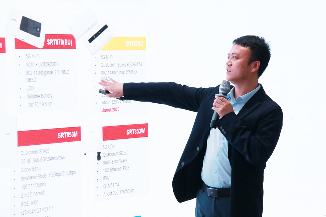 美格智能MBB产品线总经理张秋月详细介绍了公司4G/5G MBB产品、4G/5G智能模组等产品,美格智能基于高通平台打造了多款高性价比5G模组及超高算力5G智能模组,目前已应用在全球众多5G物联网场景中,助力千行百业物联网应用加速落地。
