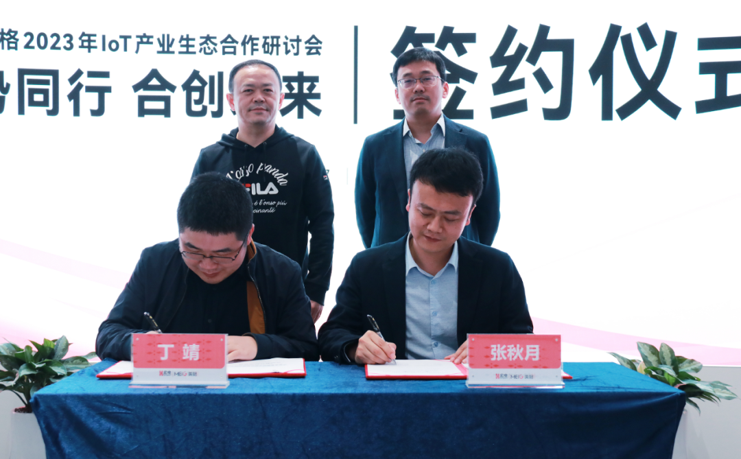 随后,宏电股份与美格智能进行战略合作签约。双方将本着发展、共赢、平等、互利的原则,聚焦5G+AIoT领域,在产品方案联合创新、应用落地等方面开展合作,充分发挥协同效应,共同助力产业数字化、智能化建设。
