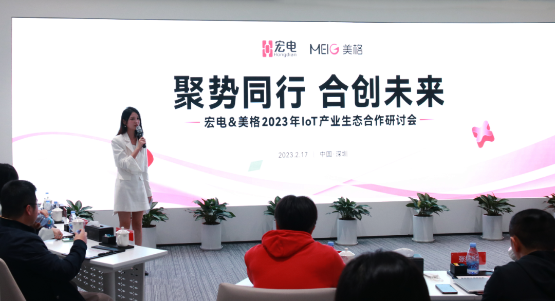 参观结束后,美格智能团队和宏电股份团队进行了以“聚势同行、合创未来”为主题的IoT产业生态合作研讨会,主要围绕5G的未来发展、AIoT物联网行业的技术等方面进行了深入的探讨和交流。