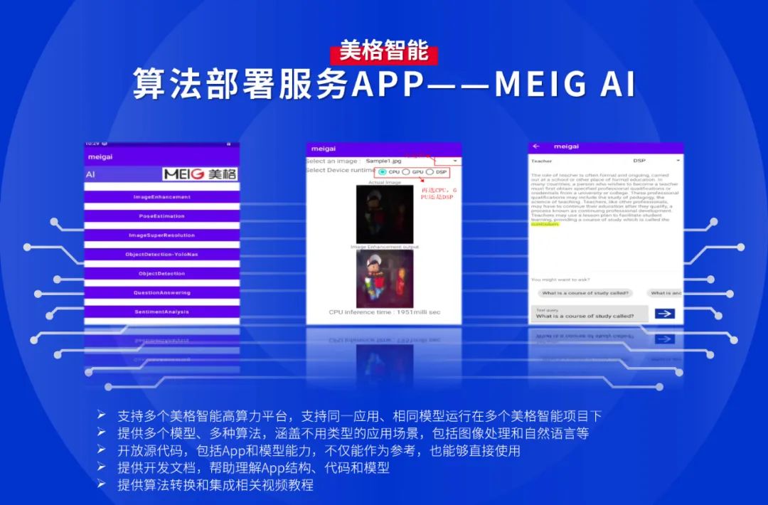 此外,为帮助客户更快速地打造更加垂直的模型应用,在模型算法优化方面,美格智能为行业客户打造AI算法部署服务APP——MEIG AI,内置多个模型和算法,客户在APP上即可完成AI算法在不同美格智能模组平台的应用验证,并为客户和开发者提供开发文档和算法转换、集成的相关视频教程,帮助理解App结构、代码和模型,提高开发效率。在模型部署方面,美格智能携手行业合作伙伴打造AIMO(AI模型优化器),实现一站式模型转写,仅使用Python即可开发部署AI应用,有效降低开发门槛,大幅缩短模型落地周期,节约开发投入。