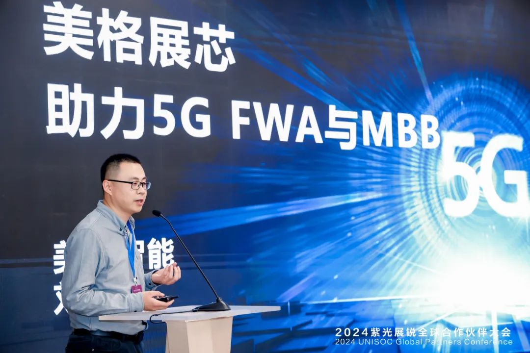活动现场,美格智能产品总监刘伟鹏进行了题为《深耕5G FWA与MBB,智展新未来》的主题演讲,与行业伙伴分享美格智能与紫光展锐多年深耕的合作成果,共同探讨5G商用的前沿技术和广阔的市场前景。