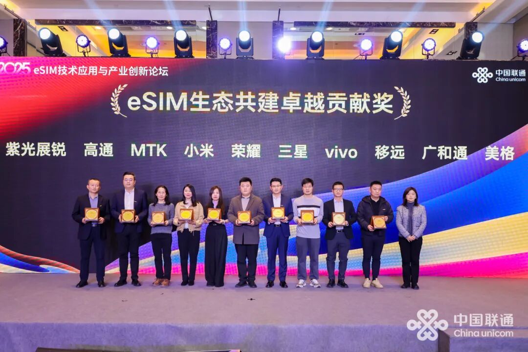 美格智能作为无线通信模组及解决方案领域的重要企业,受邀出席大会,并在“eSIM技术应用与产业创新论坛”上,凭借其在eSIM领域的持续创新与市场贡献,荣获“eSIM生态共建卓越贡献奖”。