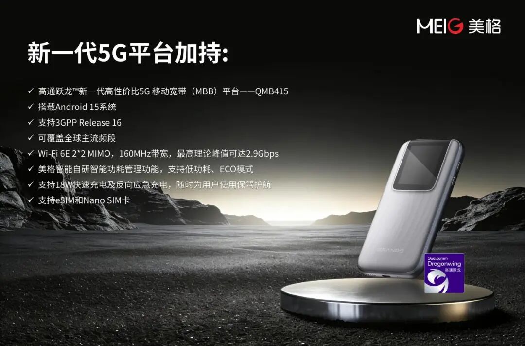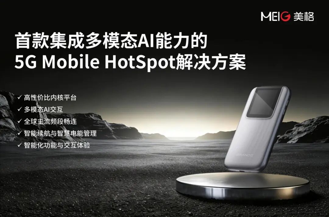 在5G与人工智能加速融合的今天,美格智能再次以创新引领行业,正式推出旗下首款集成多模态AI能力的5G Mobile HotSpot(智能移动热点)解决方案——SRT8710。该方案不仅是一款高速5G移动Wi-Fi终端,更是一个集成了视觉、语音与智能决策能力的“AI助手”,旨在为移动办公、跨境商旅、新零售、智能服务等领域带来前所未有的智能化连接体验。