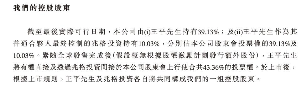 IPO前,公司由王平持有39.13%;及王平作为其普通合伙人最终控制的兆格投资持有10.03%,分别占公司股东会投票权的39.13%及10.03%,据此,王平合计控制49.16%投票权。