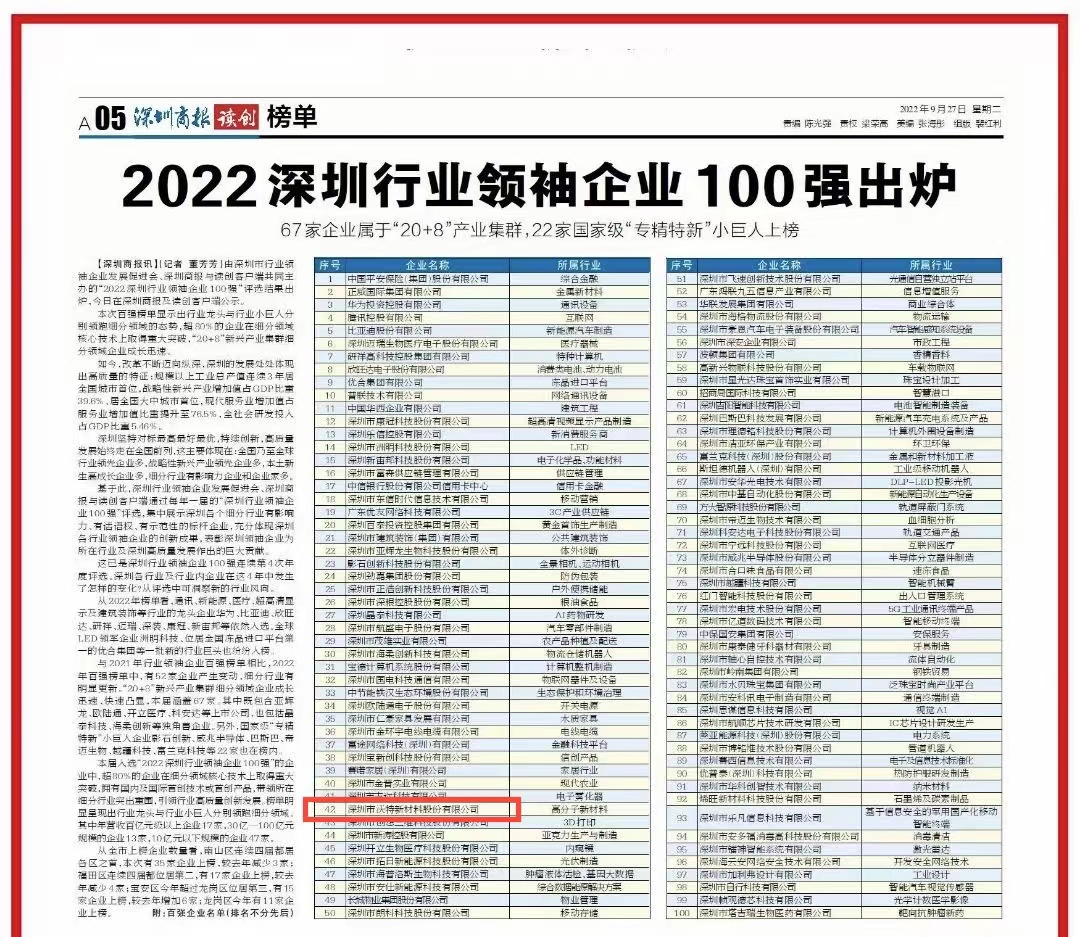 近日,“2022深圳企业500强榜单”、“2022深圳行业领袖企业100强”重磅发布,沃特股份凭借持续提升的企业实力和稳固的业绩发展再度登榜。