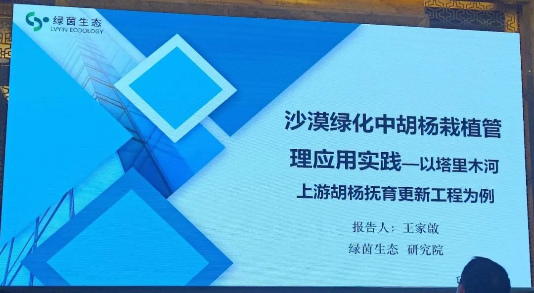 绿茵生态受邀作为此次会议企业代表,参加了工程绿化分会场,并就沙漠绿化中胡杨栽植管理案例一题进行发言。王家啟博士详细介绍了公司基本情况、山水林田湖草沙工程生态修复的重要性以及塔里木河上游胡杨林抚育更新工程案例,最后就胡杨林栽植管理结合我公司已有工程经验提出合理化技术建议。