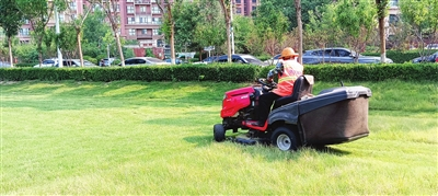 目前,绿茵生态的园林绿地养护机械化水平较高。在海河故道公园采用坐骑式剪草车,草坪修剪效率大大提高。