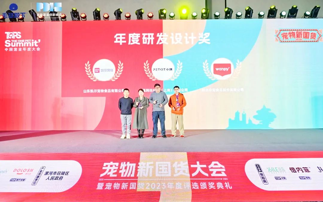演讲讨论环节过后,在现场参会嘉宾和观众的注视下,2023宠物新国货年度大奖获奖名单正式揭晓。中宠股份凭借行业领先的研发技术实力,荣获2023宠物新国货“年度研发设计奖”;作为中宠股份旗下核心自主品牌之一,wanpy顽皮?品牌由俄罗斯宠物行业咨询公司zooinform提名,荣获2023宠物新国货“年度出海品牌——俄罗斯市场之选”荣誉称号;在国内市场,wanpy顽皮?品牌旗下热门新品生骨肉双拼猫粮成功荣获2023宠物新国货猫主粮品类“年度创新产品奖”荣誉。Toptrees领先?也成功荣获2023宠物新国货“年度平台之选·京东之选——最佳国货星锐品牌”荣誉称号,企业综合实力及品牌发展潜力收获行业肯定。