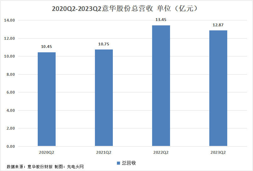 2020-2023年二季度单季度公司分别实现总营收10.45亿元,10.75亿元,13.45亿元,12.87亿元;同比变动226.93%,2.94%,25.08%,-4.32%。