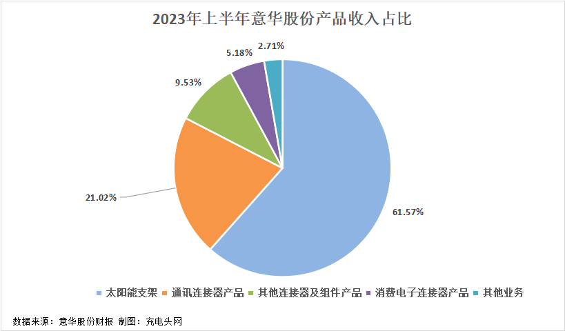 2023H1公司太阳能支架营收13.69亿元,占总营收的比例为61.57%;通讯连接器产品4.67亿元,占总营收的比例为21.02%;其他连接器及组件产品2.12亿元,占比为9.53%,消费电子连接器产品营收1.15亿元,占比为5.18%;其他业务收入0.61亿元,占比为2.71%。