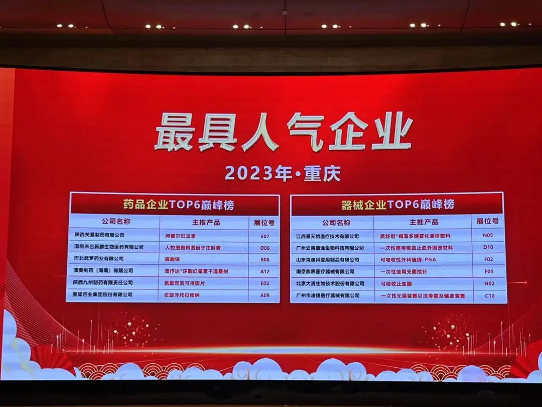 2023年12月27日,由联众主办的省级药品渠道对接会走进山城重庆。在展会筹备之初,赛隆药业多个待上市产品就已经获得了当地市场的热烈关注,最终赛隆药业不负众望,在此次展会荣获“最具人气企业”称号!