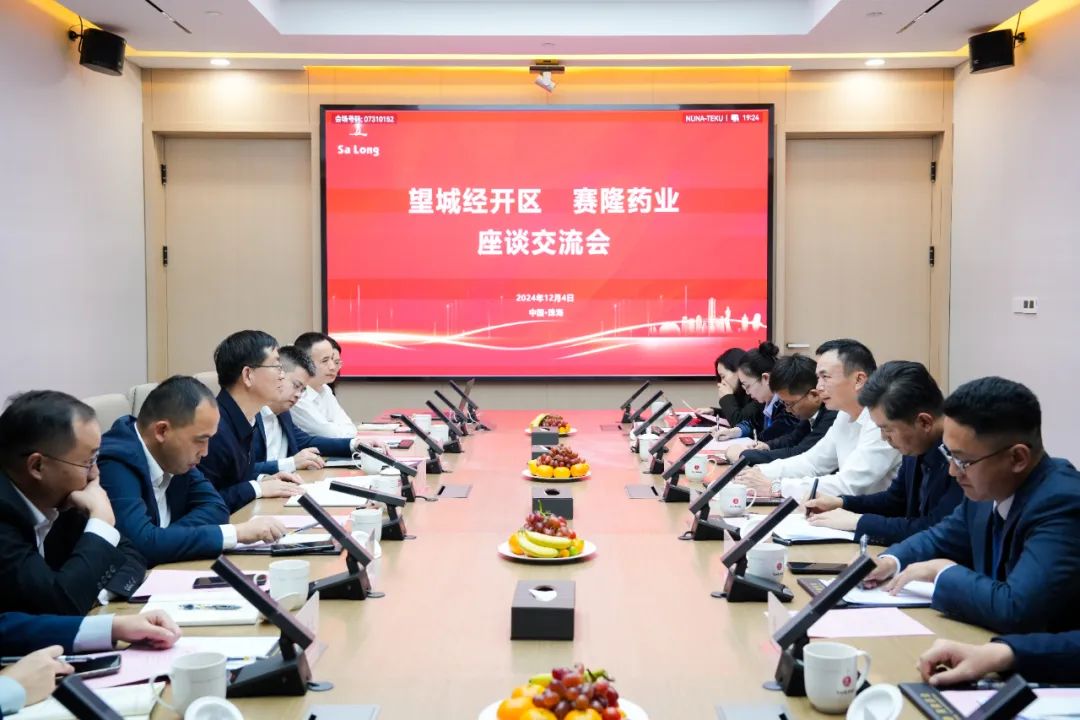 2024年12月4日,长沙市望城经济技术开发区党工委副书记、管委会主任周剀一行莅临赛隆药业集团总部座谈交流,赛隆药业集团董事长、总裁蔡南桂携公司团队热情接待。双方就企业经营发展、市场业务拓展、人才队伍建设等话题进行了充分深入的交流和探讨。