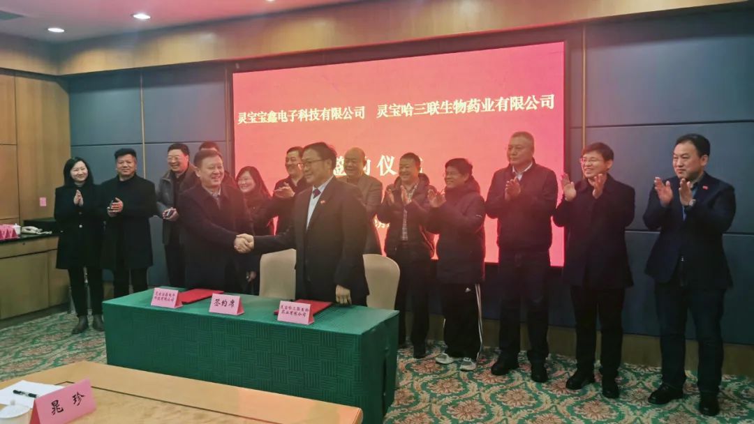 12日,在灵宝市政府和秦剑飞董事长及相关领导的见证下,灵宝哈三联生物药业有限公司与地块转让方灵宝宝鑫电子科技有限公司举行了签约仪式,标志着地块转让工作顺利完成。