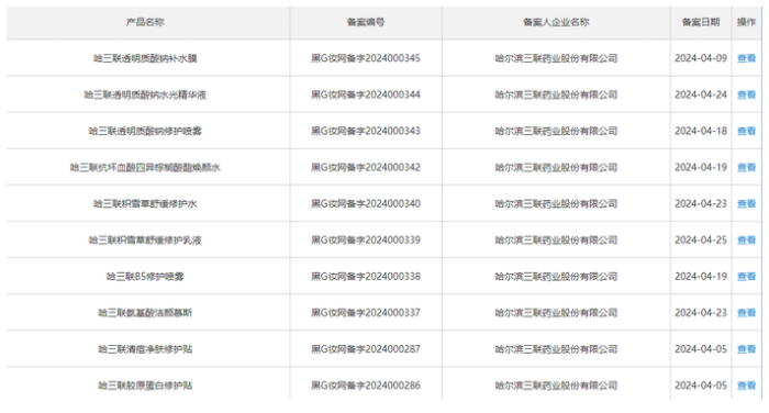 查询发现,哈三联的化妆品生产资质“黑妆202300002”也是这一时期申请成功的。