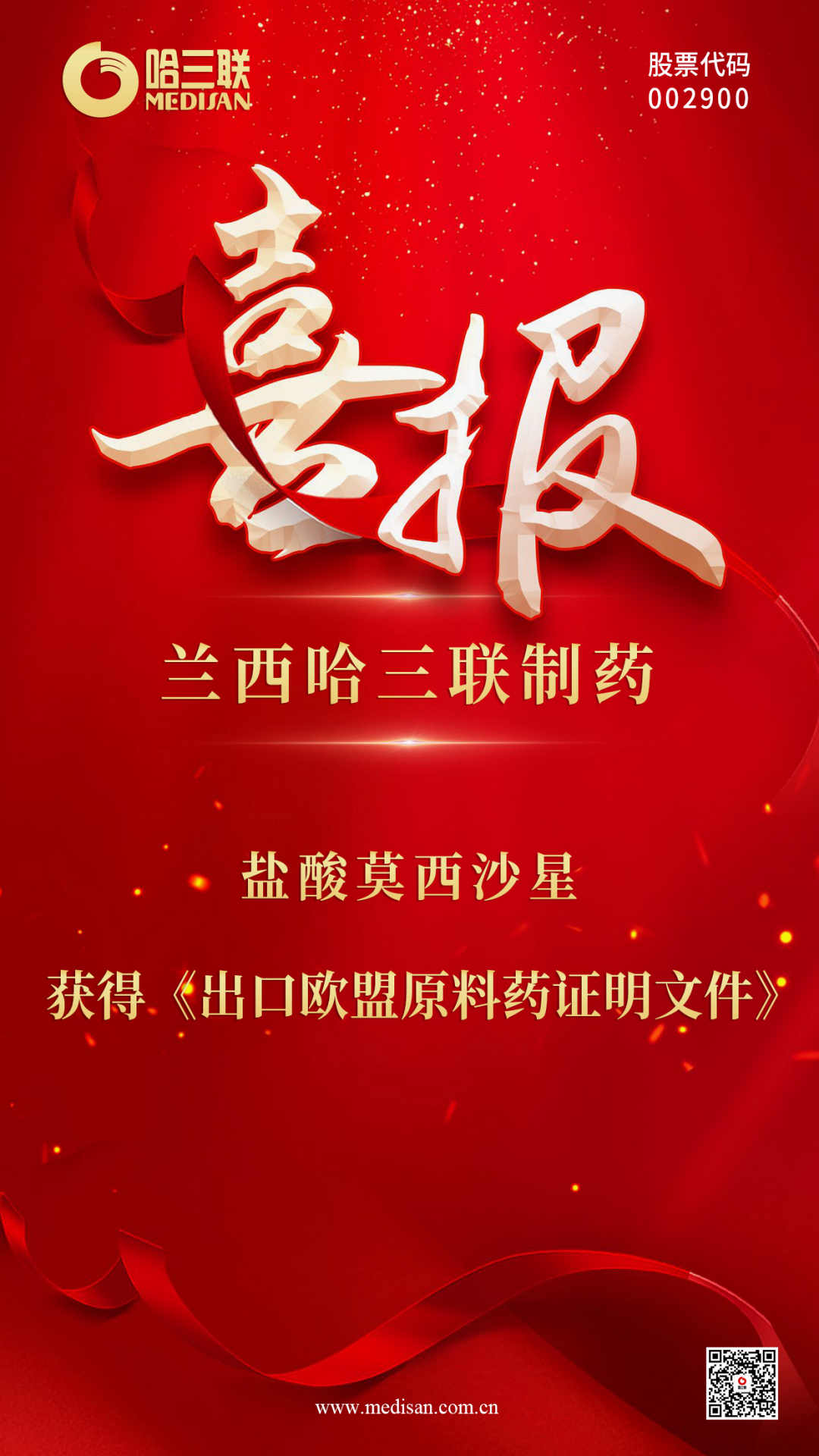 1月23日,哈三联全资子公司兰西哈三联制药生产的盐酸莫西沙星获黑龙江省药品监督管理局正式签发的《出口欧盟原料药证明文件》,迎来公司原料药国际化新突破,为进一步拓展欧洲市场、深化国际合作提供有力保障。